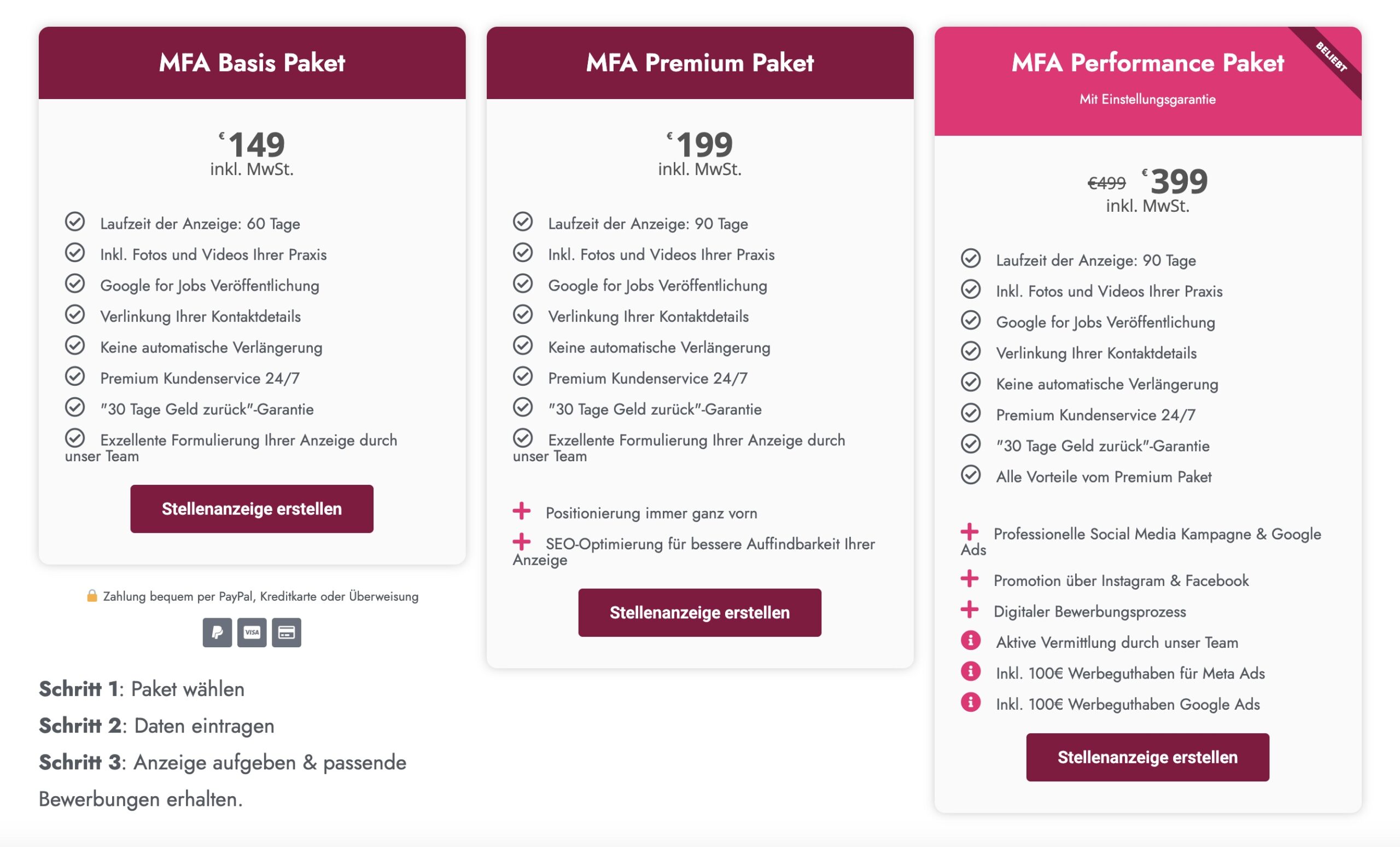 Alle Pakete führen zu mehr Bewerbungen – wählen Sie je nach Ziel & Budget.